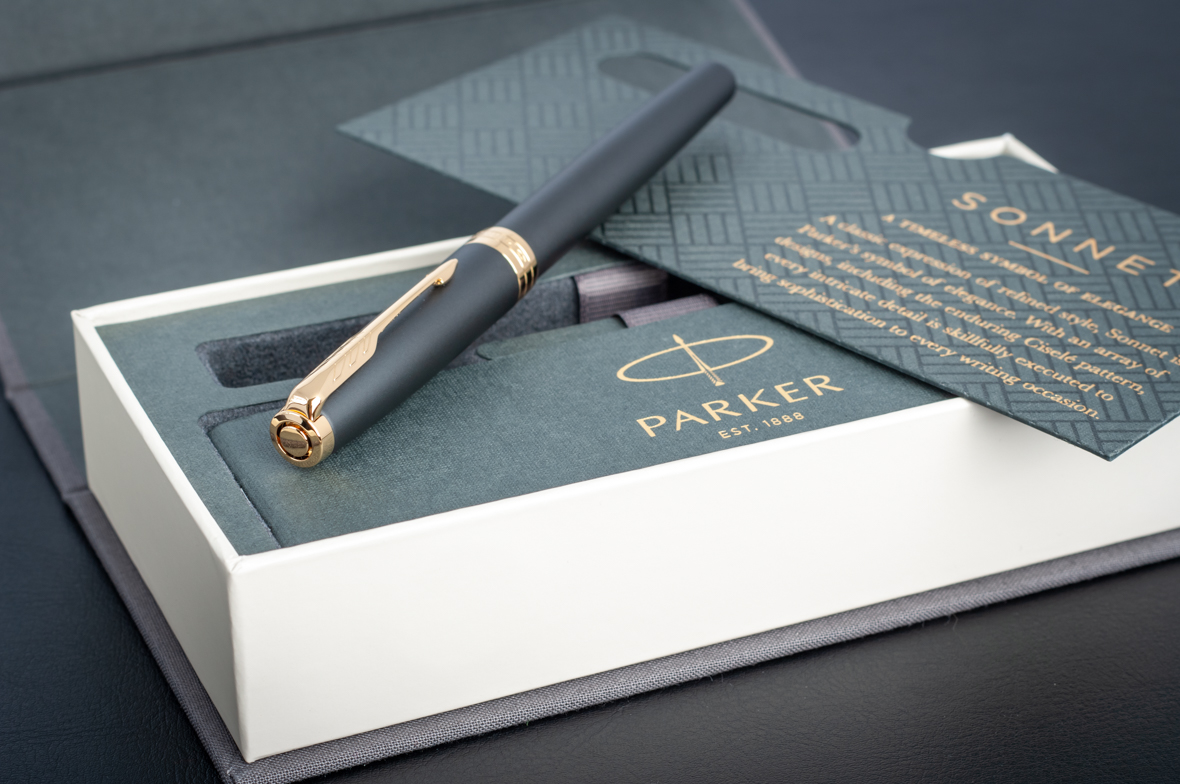 Перьевая ручка Parker Sonnet Matte Black GT от официального дилера Parker в Ангарске. Вы можете дополнительно заказать гравировку, которая подчеркнет Вашу оригинальность и придаст памятность статусному подарку. Все ручки Паркер поставляются в фирменном футляре.